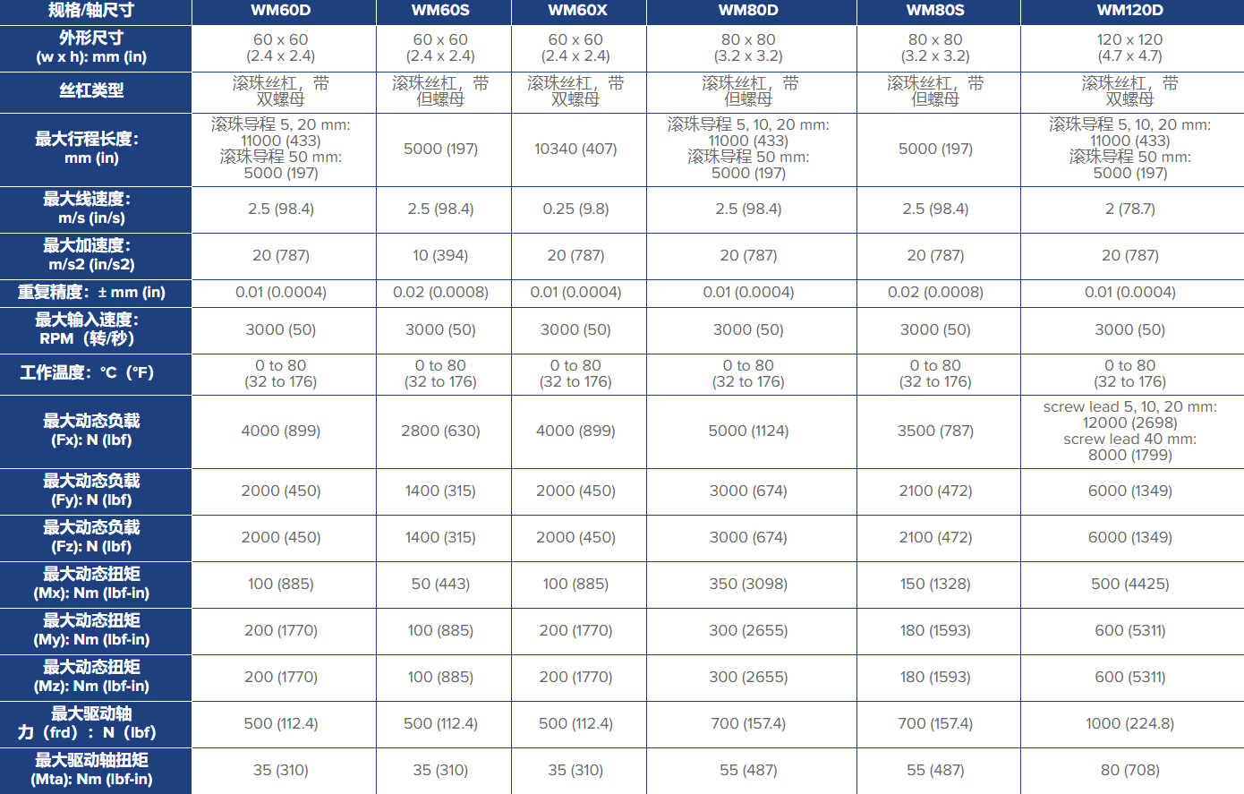 WM系列為需要?jiǎng)偠?、剛性和精度的?yīng)用提供絲杠驅(qū)動(dòng)滾珠導(dǎo)向的運(yùn)動(dòng)。MLSM采用寬軸承結(jié)構(gòu),具有高力矩負(fù)載。WV單元類(lèi)似于WM單元,但需搭配外部軸承導(dǎo)軌使用。WMZ單元是一種負(fù)載能力更高的WM軸承系統(tǒng),但采用皮帶驅(qū)動(dòng),速度更高。